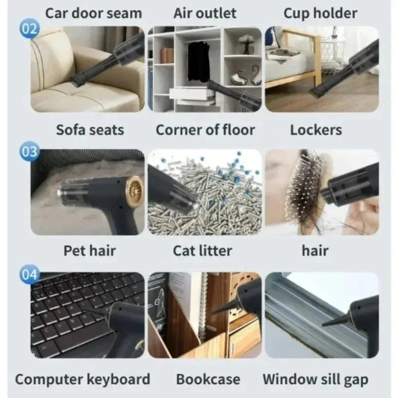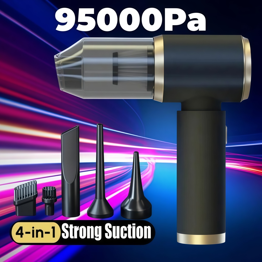 Our mini vacuum delivers an impressive 95,000PA suction power, strong enough to pick up dust, crumbs, pet hair, and even stubborn dirt from car seats, keyboards, and tight corners.
